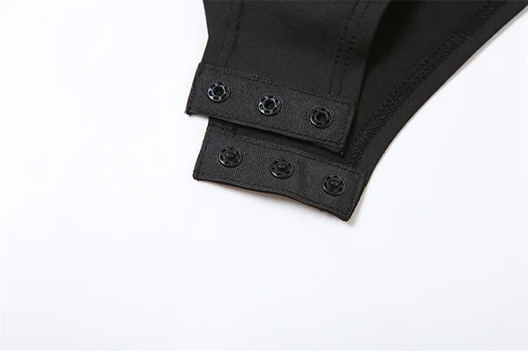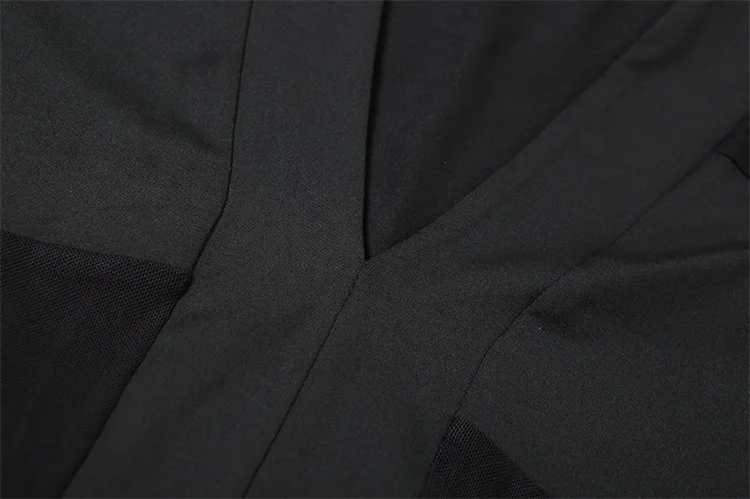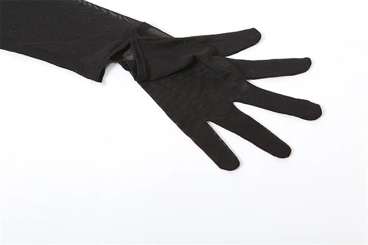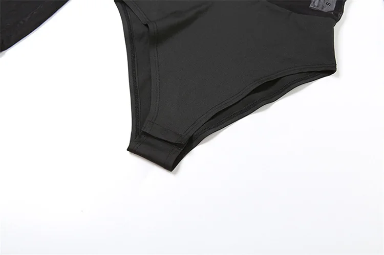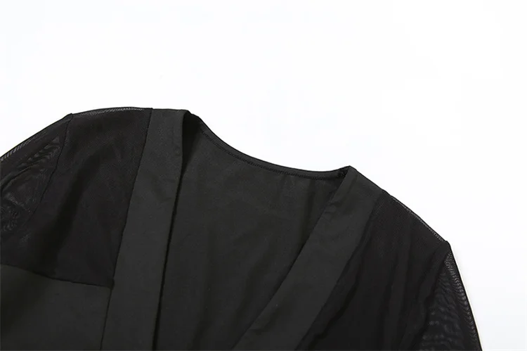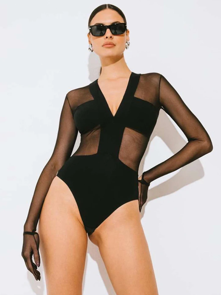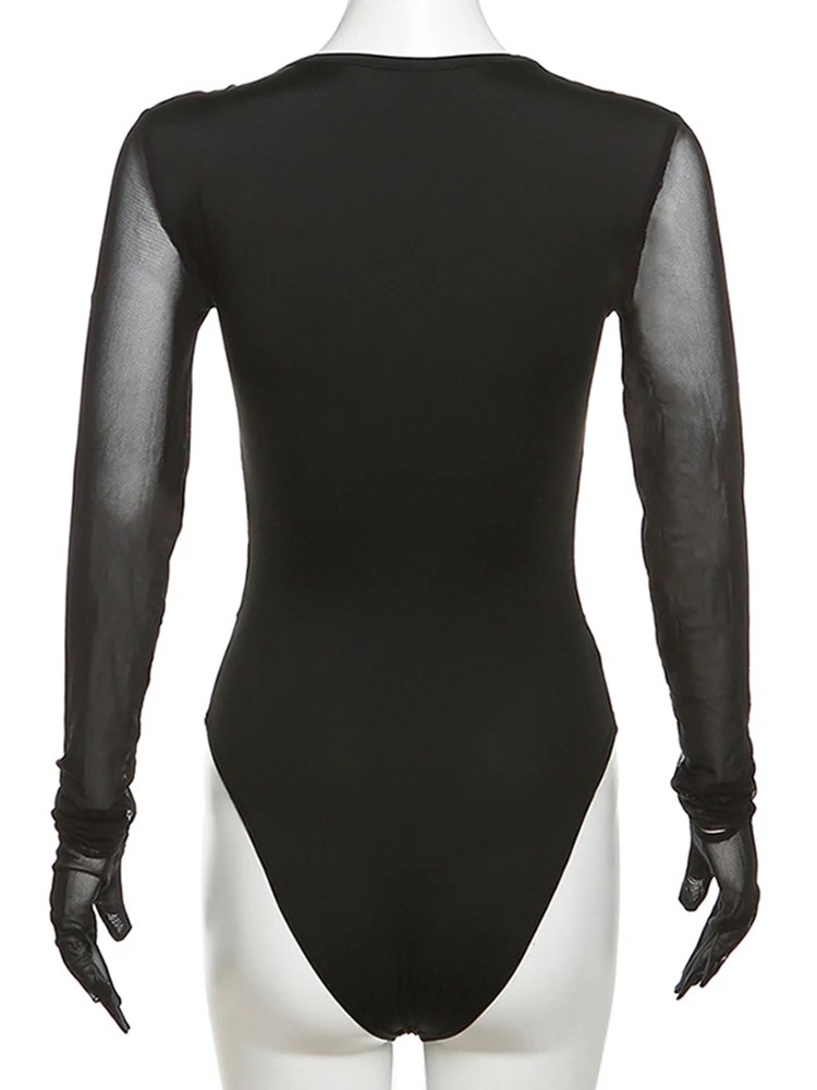 Mesh Patchwork Bodysuit V-neck Long Sleeve With Gloves Sheath