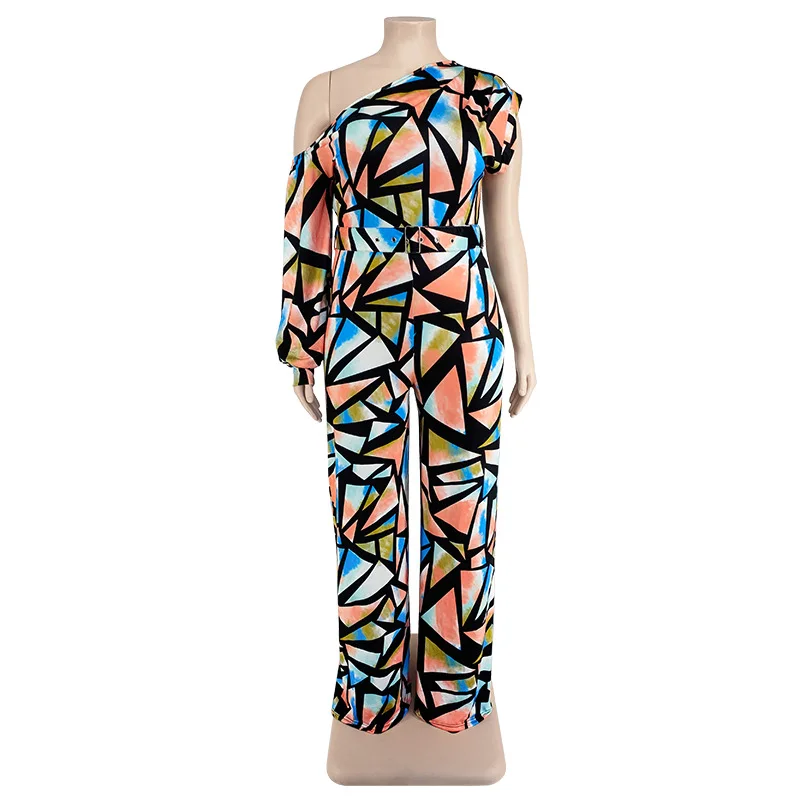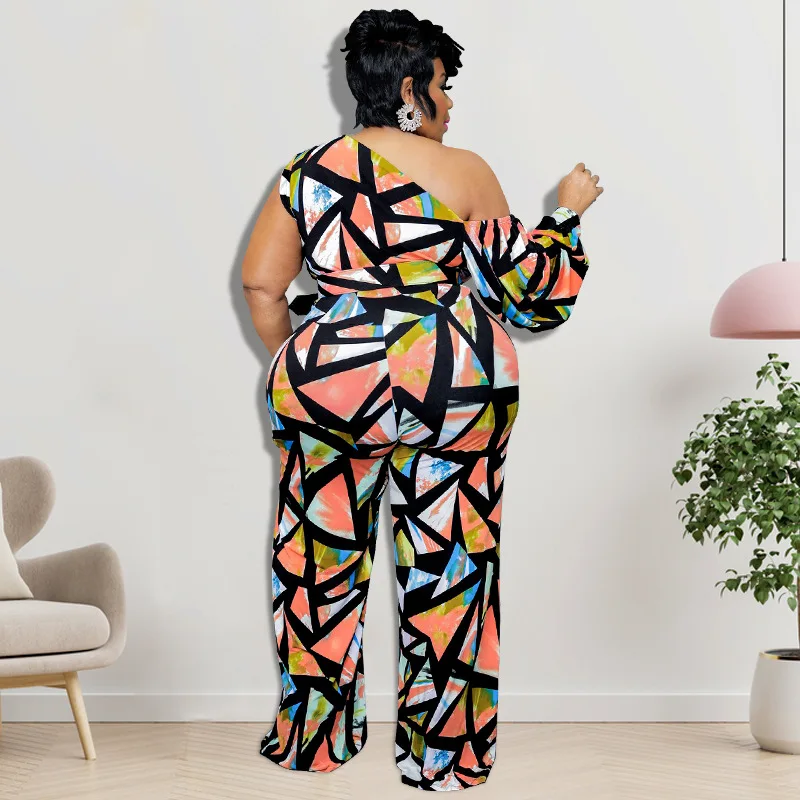 Women's Jumpsuit L- 4xl Plus Size One Piece Outfits Single Sleeve Plaid Wide Leg with Slash Bodysuit